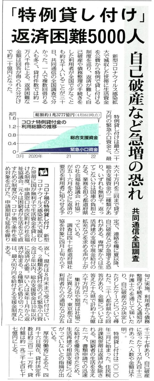 自己破産や返済困難が5000人 コロナ特例貸付金は20億円(共同通信)ーYahoo!ニュース