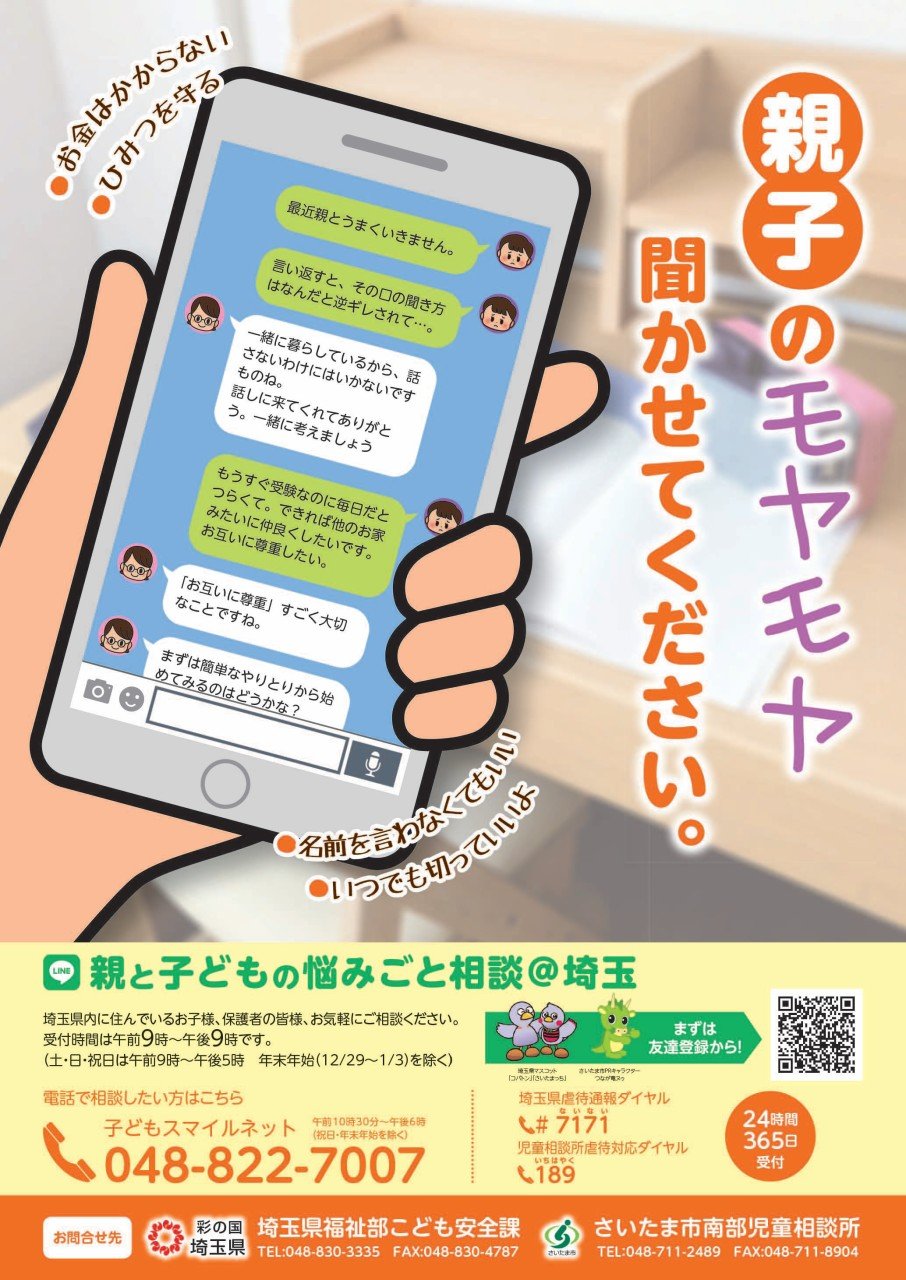 親と子どもの悩みごと相談@埼玉~親子関係の不安や悩みをLINEで相談できます~ー埼玉県