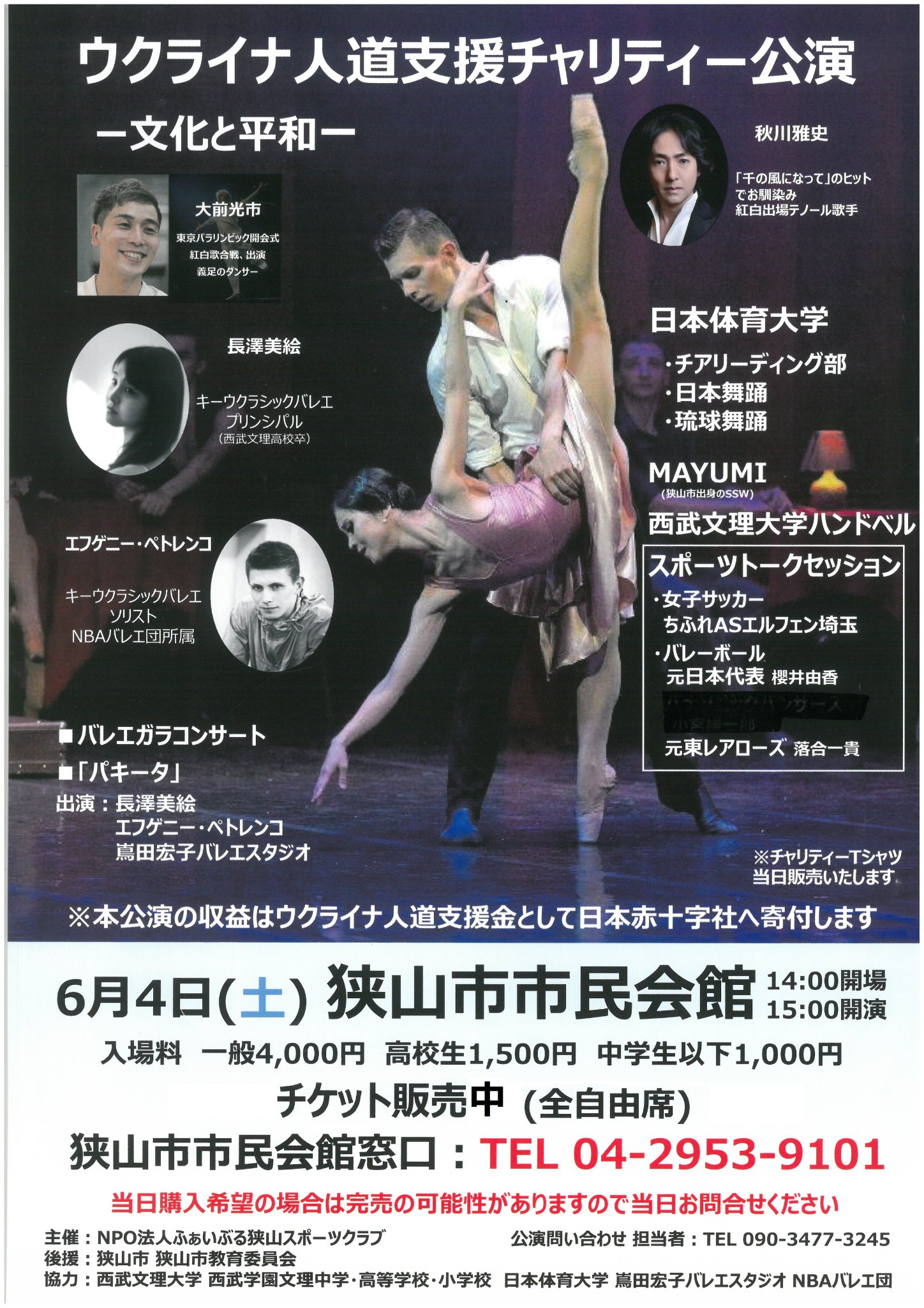ウクライナ人道支援チャリティー公演のお知らせ(市民会館チケット取り扱い公演)変更:パナソニックパンサーズ 小宮雄一郎選手の出演取消しー狭山市民会館
