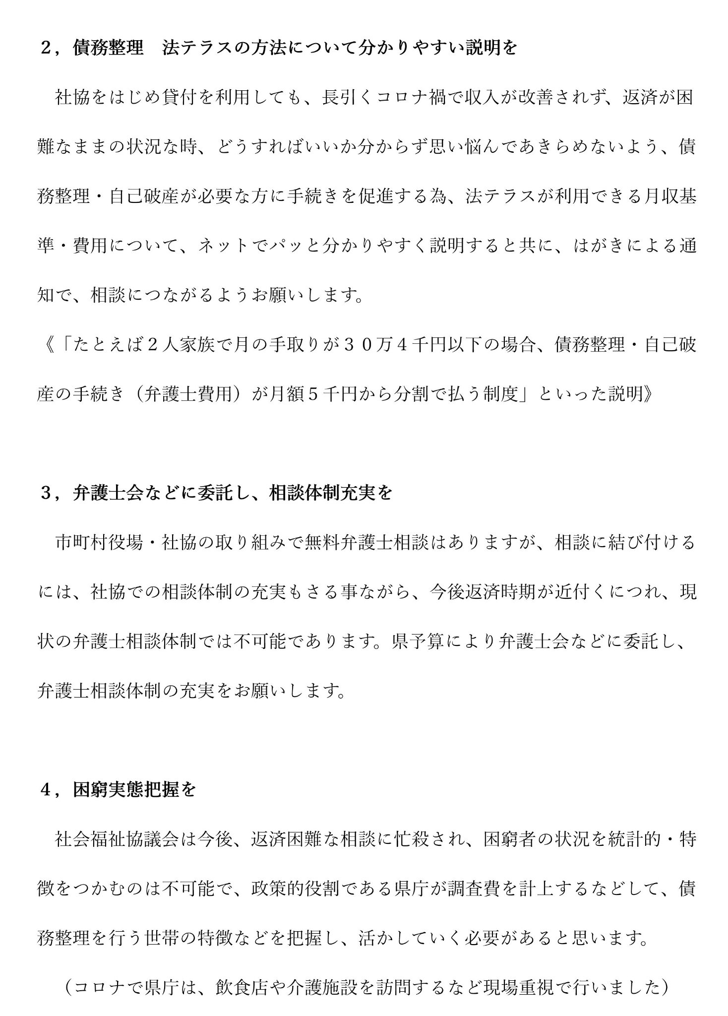 ⇩こちらには書いていない『生活困窮者』への給付の拡充については協議しましたが現状、前に進んでおりません。今後も求めて行きます。