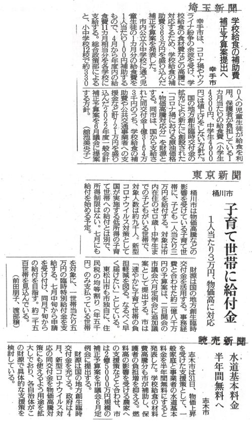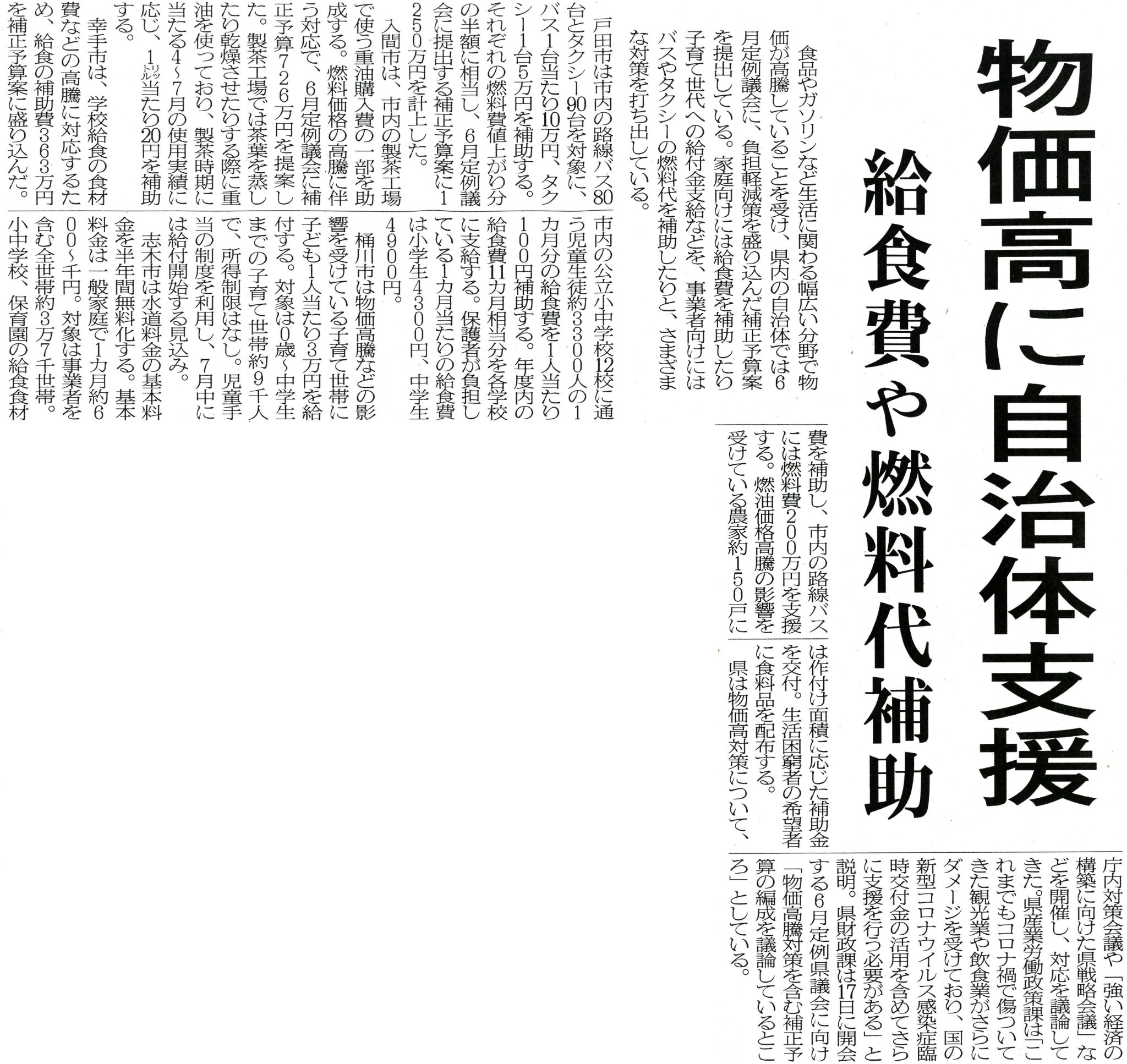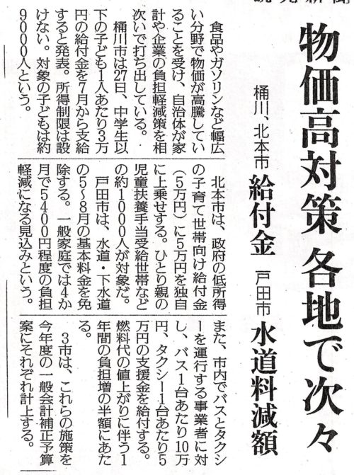 物価高対策 補助の報道(6月3日埼玉新聞)
