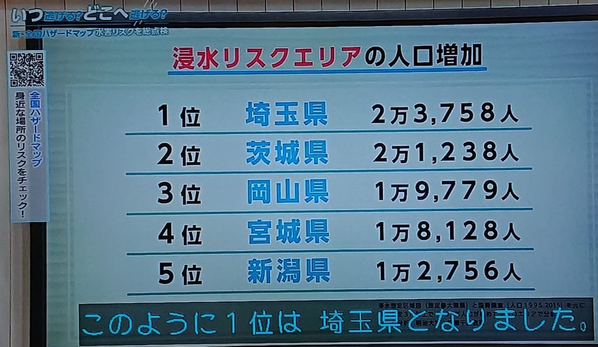 📺NHKスペシャル『いつ逃げる?どこへ逃げる❓〜新・全国ハザードマップ ☔水害リスク🌀を総点検〜』今夜(日)9時~放送
