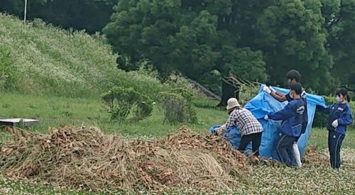 これほど草の集積場所が離れているので、ブルーシートが役立ちます(災害の時なども)。