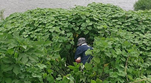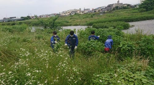 外来種は根っこから抜き、それ以外は鎌や草刈り機で刈ります。