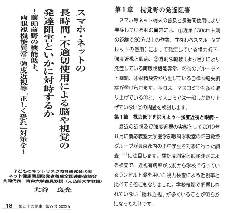 スマホ・タブレット 長時間使用で「目の発達を阻害」