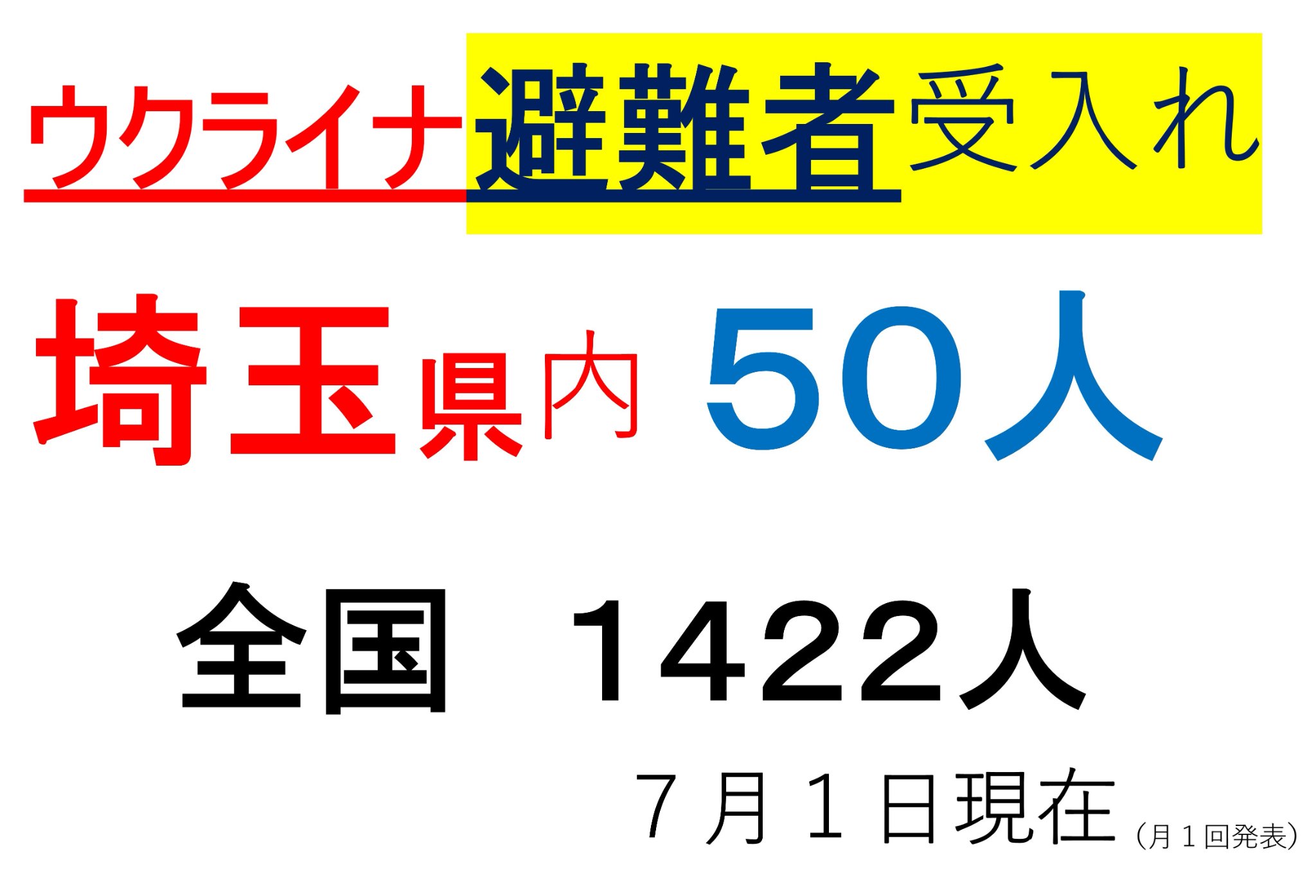 県議として私の事務所前で行っているウクライナ募金は、82万9221円となっております(2日現在)。ご協力ありがとうございます💙💛。⇩What is written below is「There are 50 Ukrainian evacuees in Saitama prefecture (as of July 1)」.