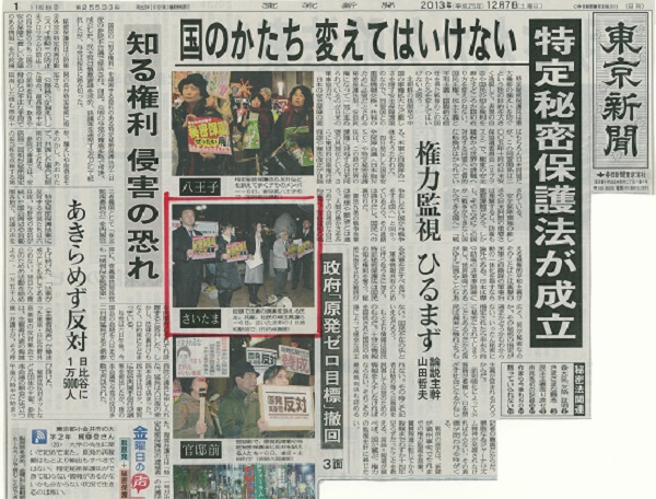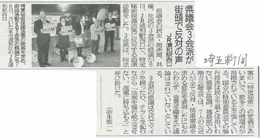 今朝の新聞に、我々県議会議員の抗議活動の写真・記事が載りました。