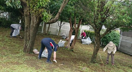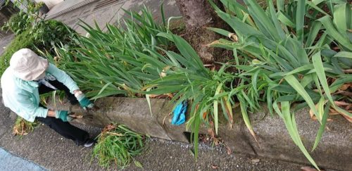 公園での草刈りを終えた後、街路樹の草刈り。