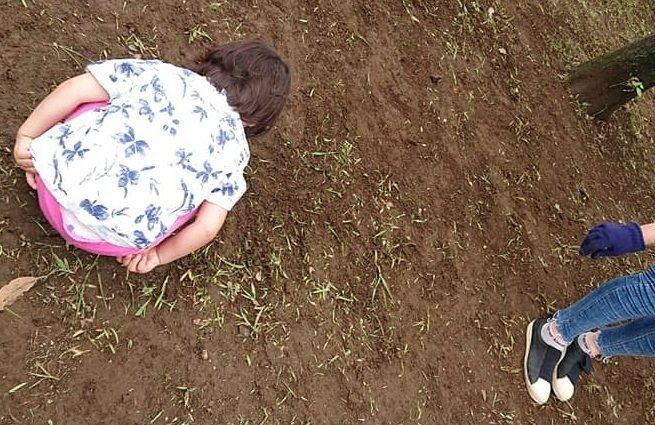 2才の子も草刈り。