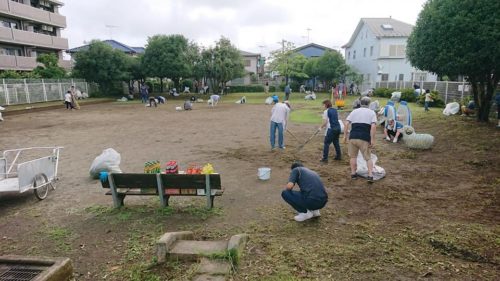 今朝は7時から、自治会で公園の草刈り