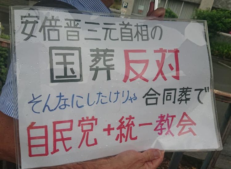 「赤木さんを忘れない」「命は皆平等」「統一教会 癒着を隠すな」。