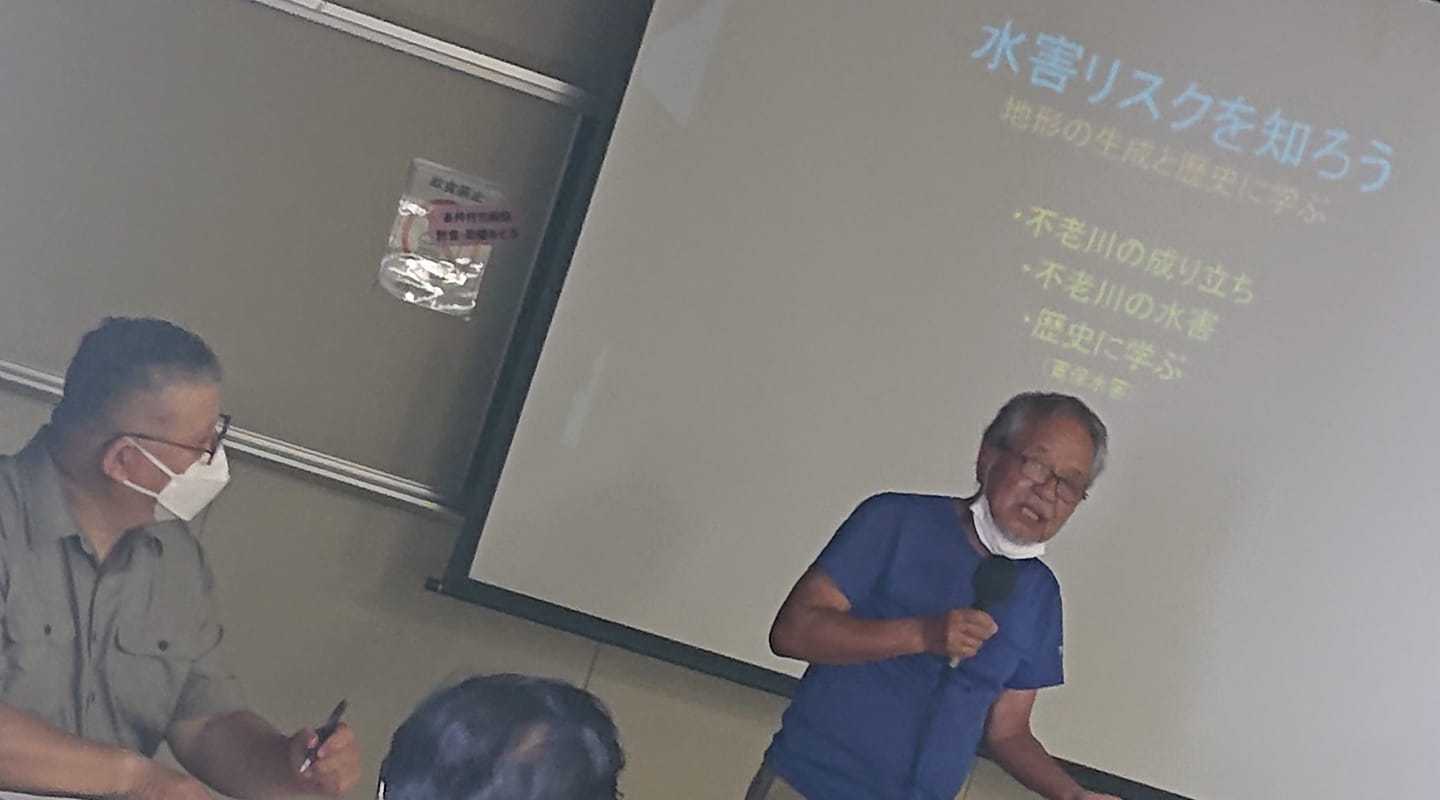 「不老川の地形は、150mで1m下がる急勾配。水があふれると水の力が強い地形の特性。川だけで対策をするのではなく、流域治水で」。