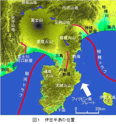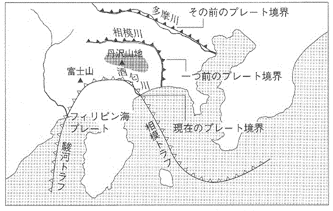 ⇩箱根・富士山の位置は、プレートの境なんですね。