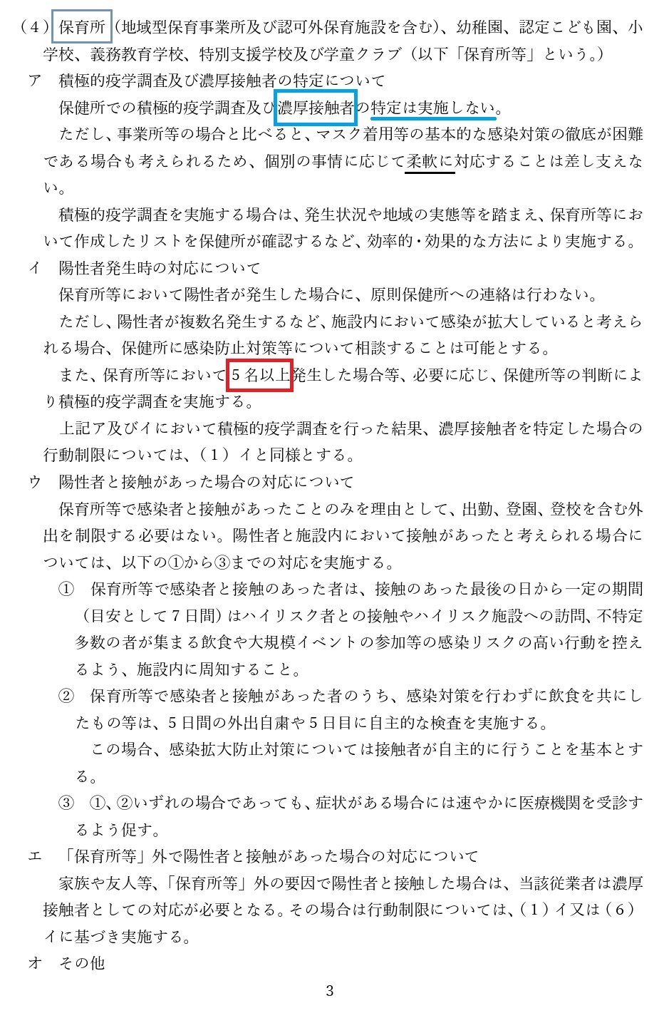 東京都では先週末の段階で既に「マスクしている保育園職員は『濃厚接触者としない』」規定にした事を保育園に通知しており、「感染5人目以上で、必要に応じ、濃厚接触者の調査をする」規定になっていると市内保育園から教えて頂きました。