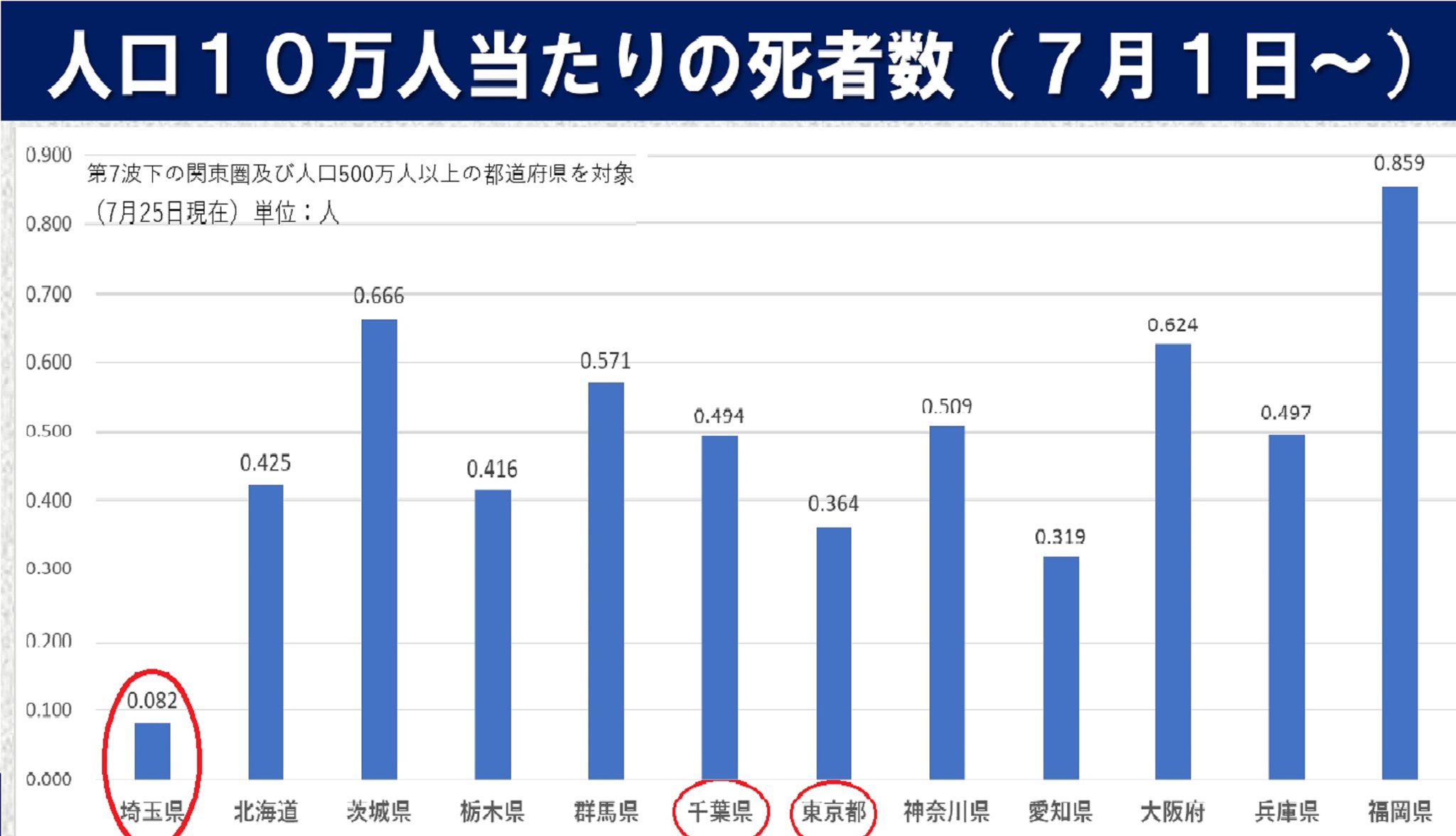 「保育所・幼稚園などで濃厚接触者の特定を行わない」と先週決定した千葉県より埼玉県の死者数は1/6、東京都と比べ1/4なのに。福岡県と比べたら1/10なのに(⇩埼玉県庁作成資料)、このエビデンス(科学的根拠)に基づき、地域の特性から地方自治体として「社会経済活動との両立の観点から、保育所・幼稚園などでの特定を行わない」と決めないのが、理解に苦しみます。