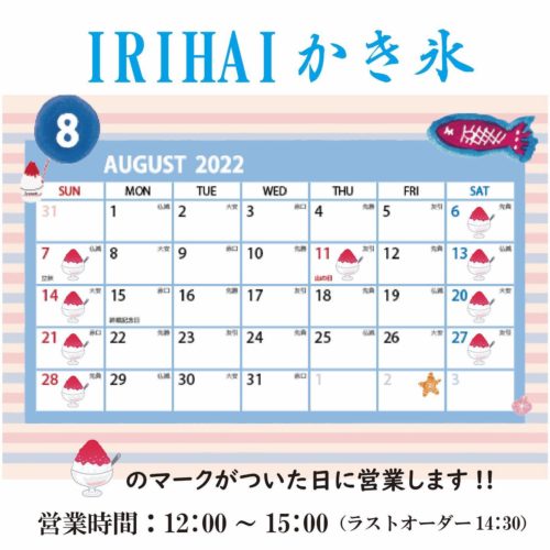 おススメは、まるでスイーツの🍧【かき氷】土日祝12~3時・8月限定。詳しくは写真をじっくりご覧下さい。