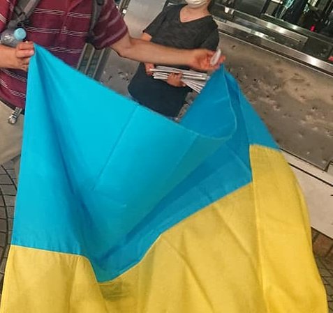 ウクライナの国旗を持参した方も。