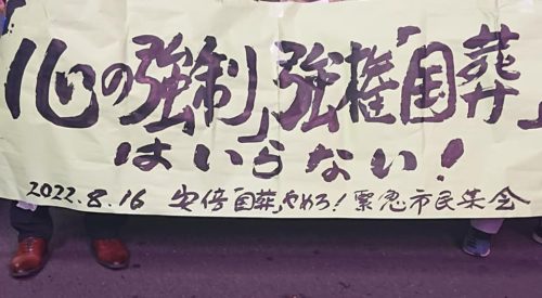 【速報】安倍元首相の国葬に抗議 落合恵子さん、鎌田慧さんも-47NEWS