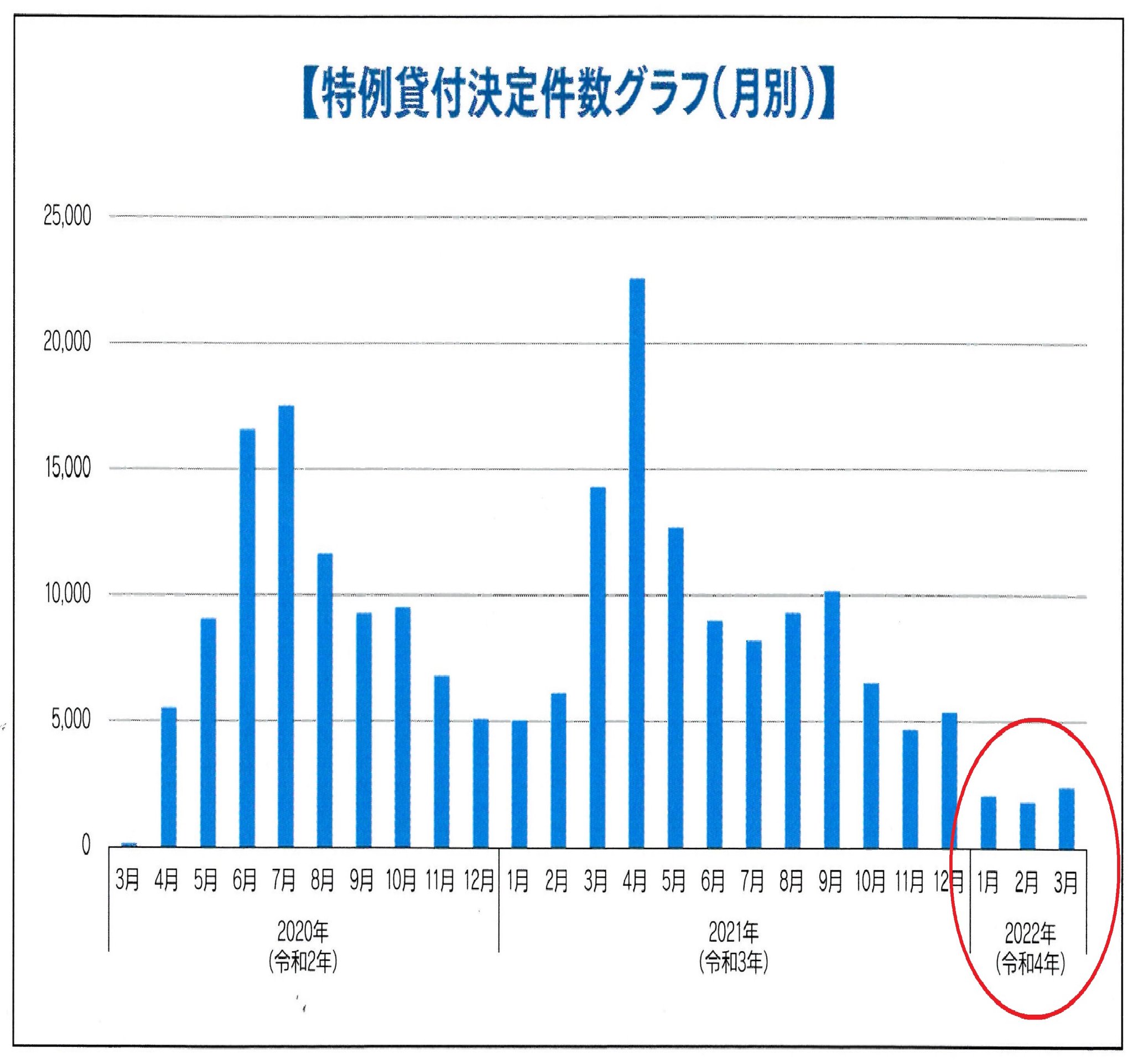 📷グラフ⇩のように、『再貸付』制度を12月にやめてしまってから、貸付件数が激減しており、コロナ禍と物価高で困窮が深刻化している中、県庁は国に要望さえしていない。対案も無い。