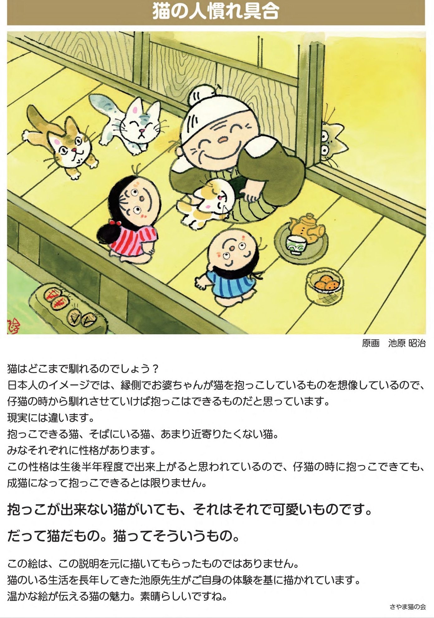 池原さん、ありがとうございます☺。⇩画像の下に、さやま猫の会さんが書かれた解説を紹介します(許可を頂いた絵はもう1枚あり、後日紹介させて頂きます)