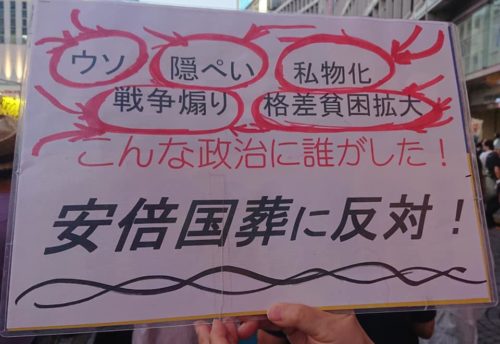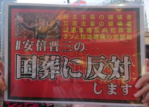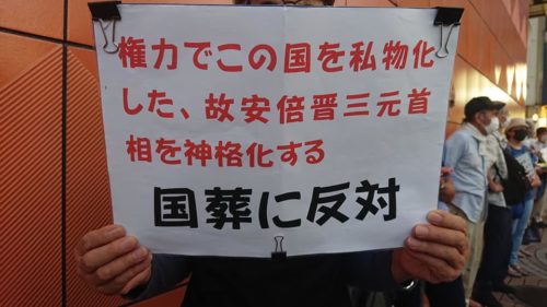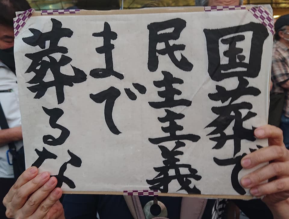 国葬をやるという事は、日本国憲法の葬式。国葬をやる事が民主主義の破壊。民主主義を徹底的に抑圧して来た安倍首相」。