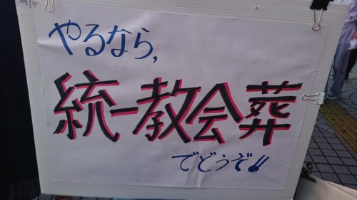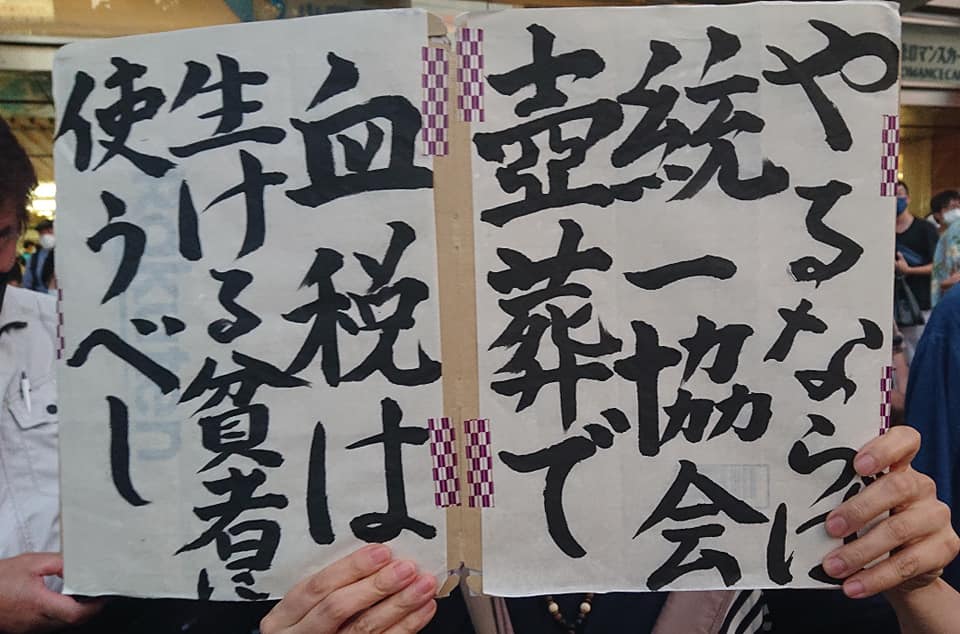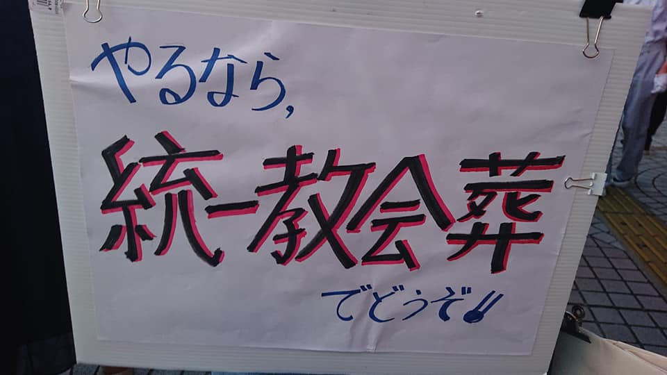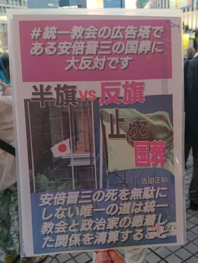 「国葬の実施と憲法改正はつながっています。憲法草案『家族と家庭を国の礎にしよう』という統一教会の考えと同じ。これから起こる事の始まりが国葬。戦前の大日本帝国の時代に戻してはなりません」。