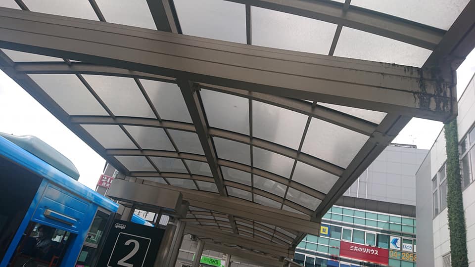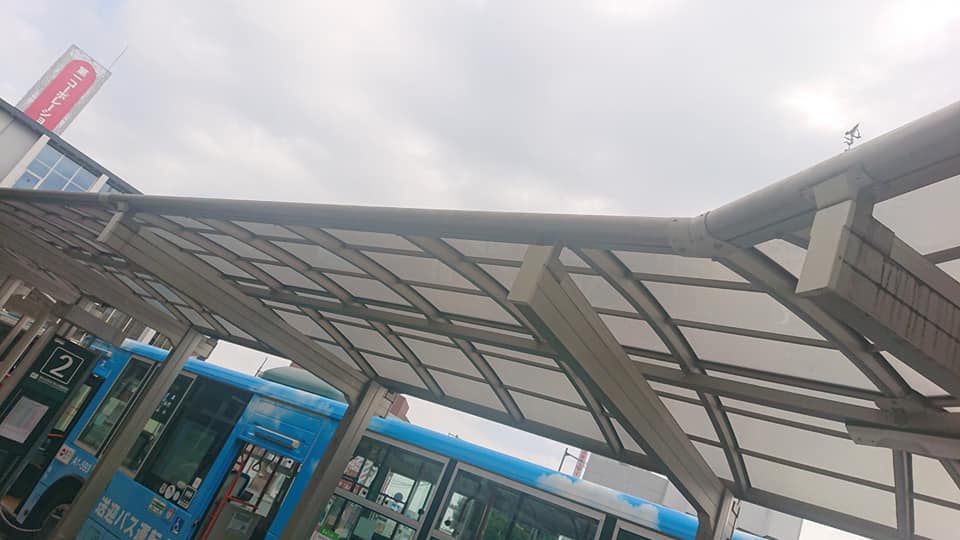 「🚌バス停の屋根の雨どいがつまってしまったままで、そこから☔雨がダダもれで落ちるので、バスを待っているお客様が結構濡れてしまう」との事で、市役所に早速写真を見せ、市のタブレットでその写真を撮影してもらい、対応をお願いしました。
