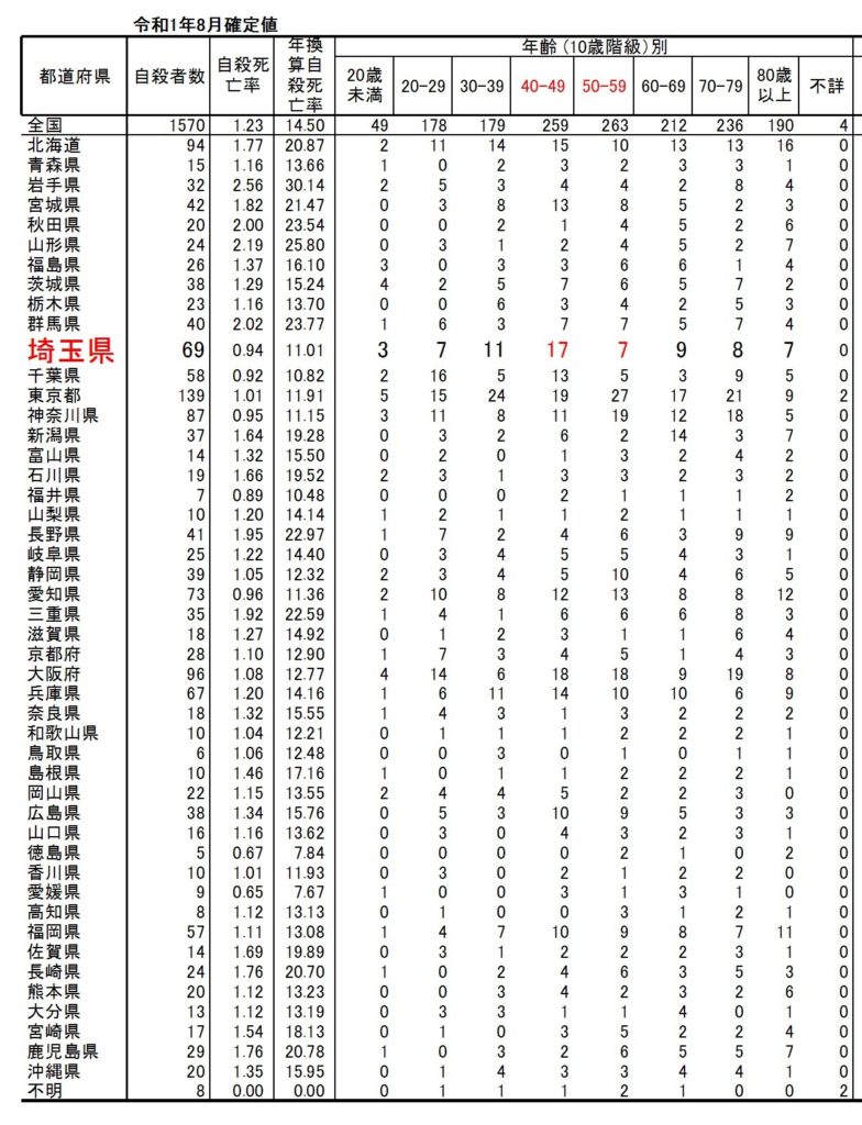 埼玉県警察本部に個人的に協力を得て、先程届いた8月分の速報をお伝えします。