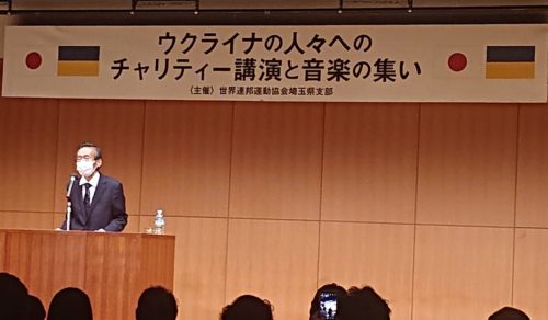 (『反貧困ネットワーク埼玉』の会議があり、弁護士・社会福祉士さんなどとの打ち合わせで1時間半遅れで)県内で行われたウクライナ支援の集会に出席(パンデューラの演奏は終わってました)。