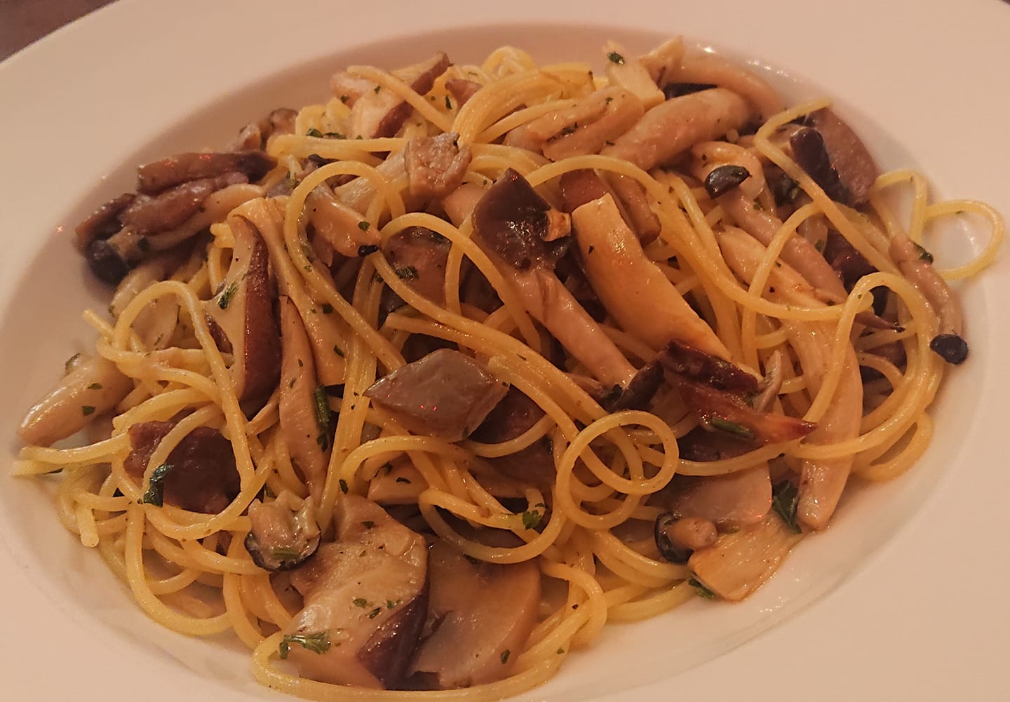 季節限定『いろいろキノコ』パスタ。私が今日お店で唯一食べたもの。