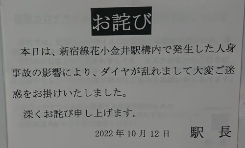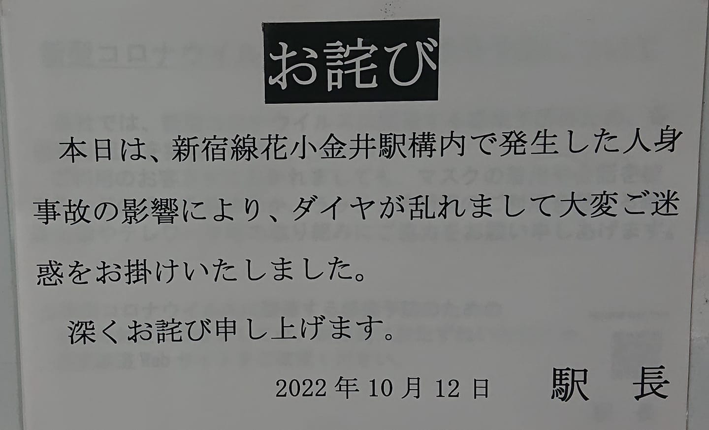 亡くなった方・命を無にしない為に、更に1歩踏み出す事にしました。今夜(水)、狭山市駅西口で『弁護士無料相談会』のPRを行いました。議会を終え、寝不足に耐えながら、6時間半以上。 (📷️写真は今日掲示されたもの。蛇足ですが、私も通勤で影響を受けました。会議に遅れはしませんが)
