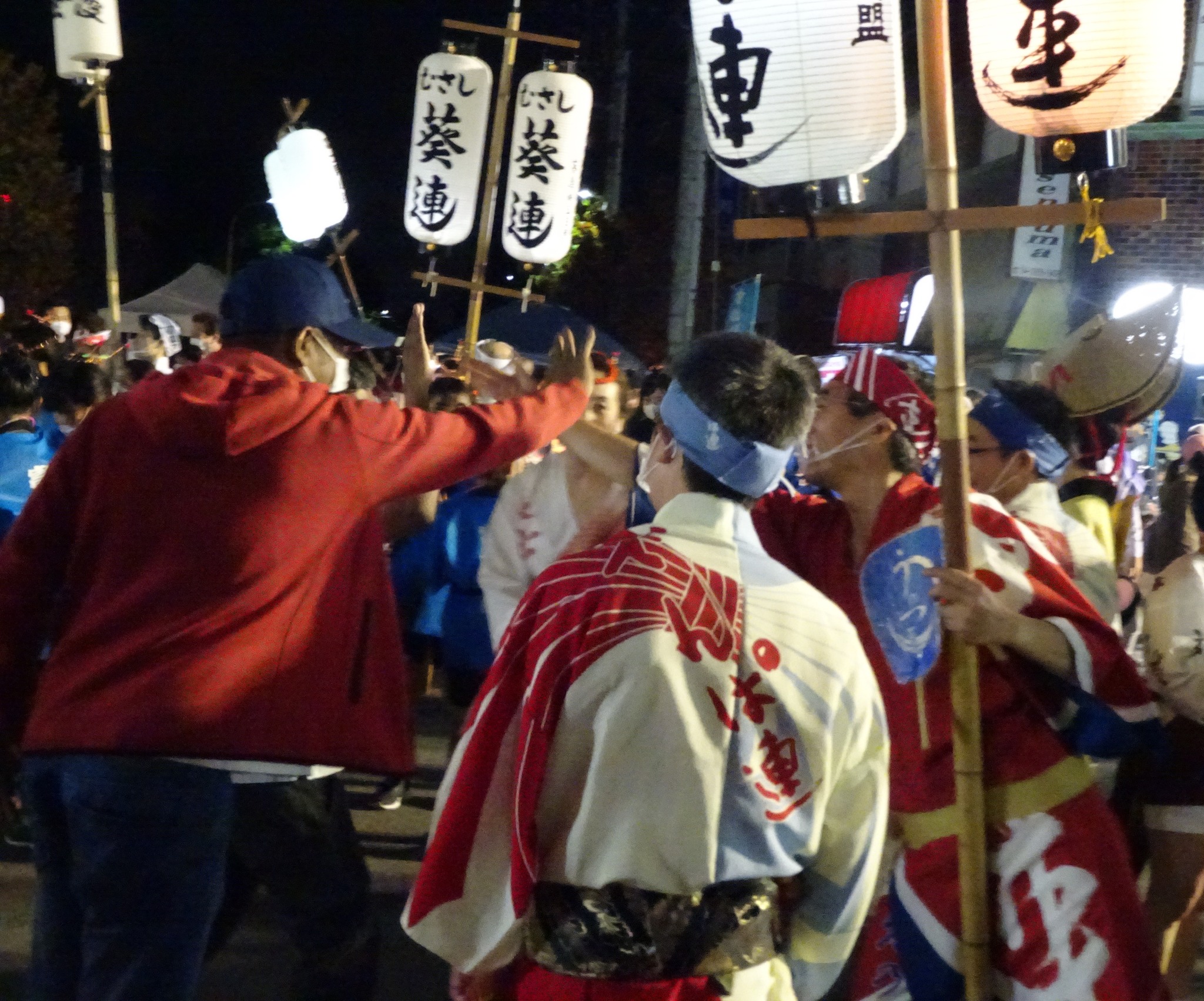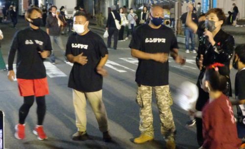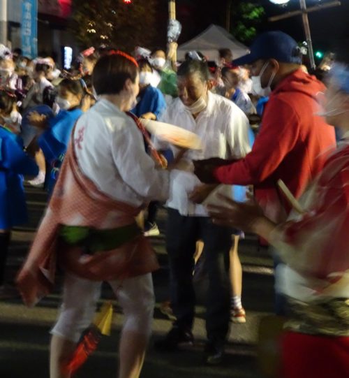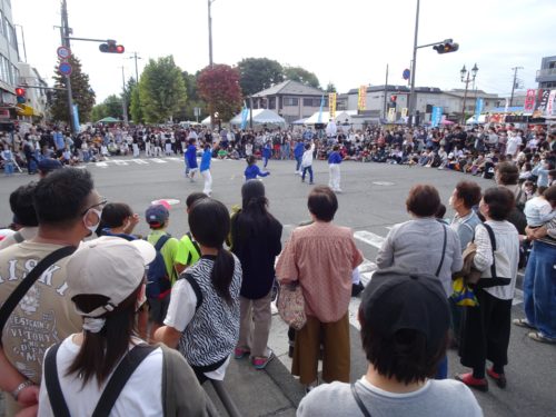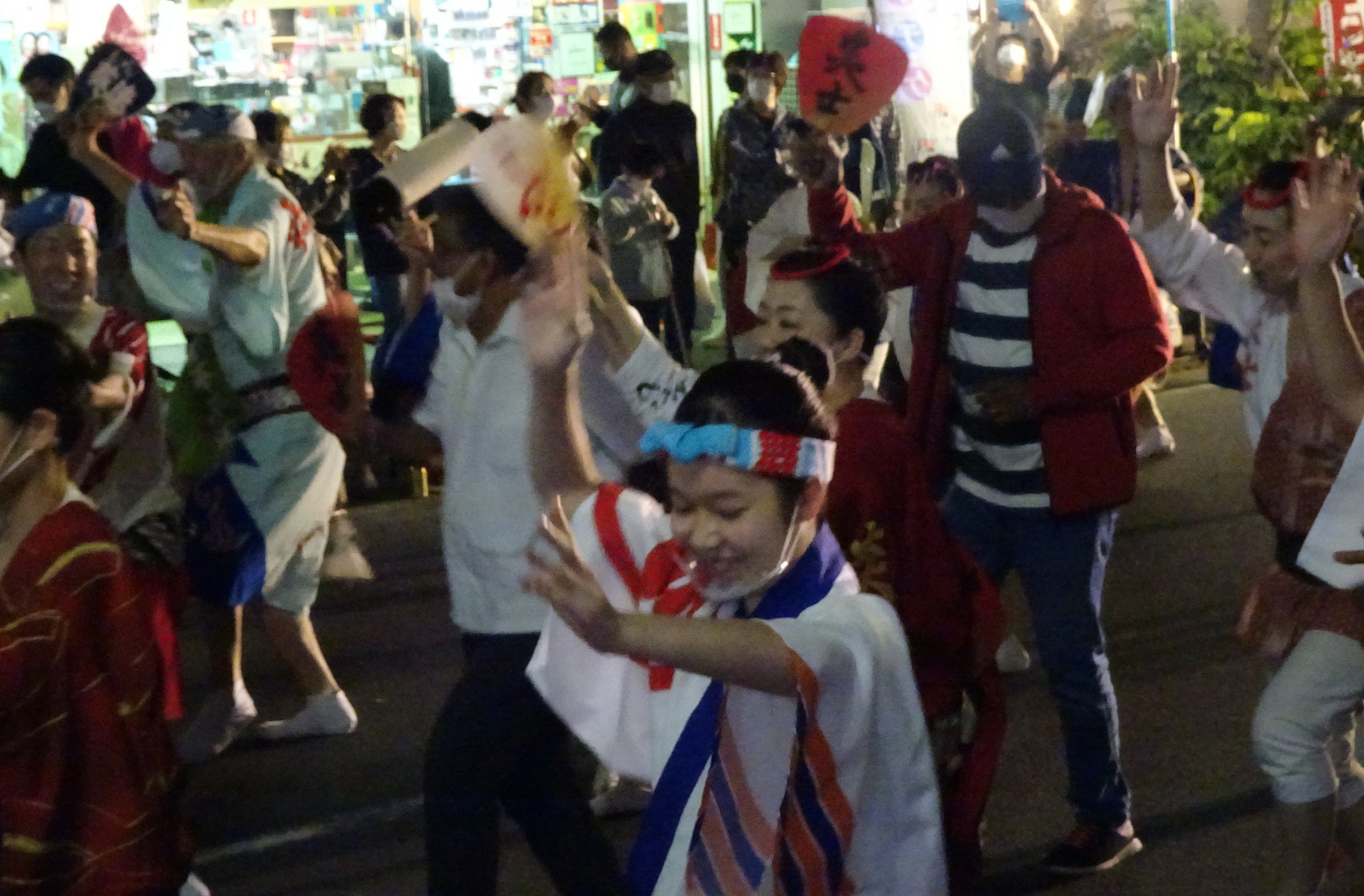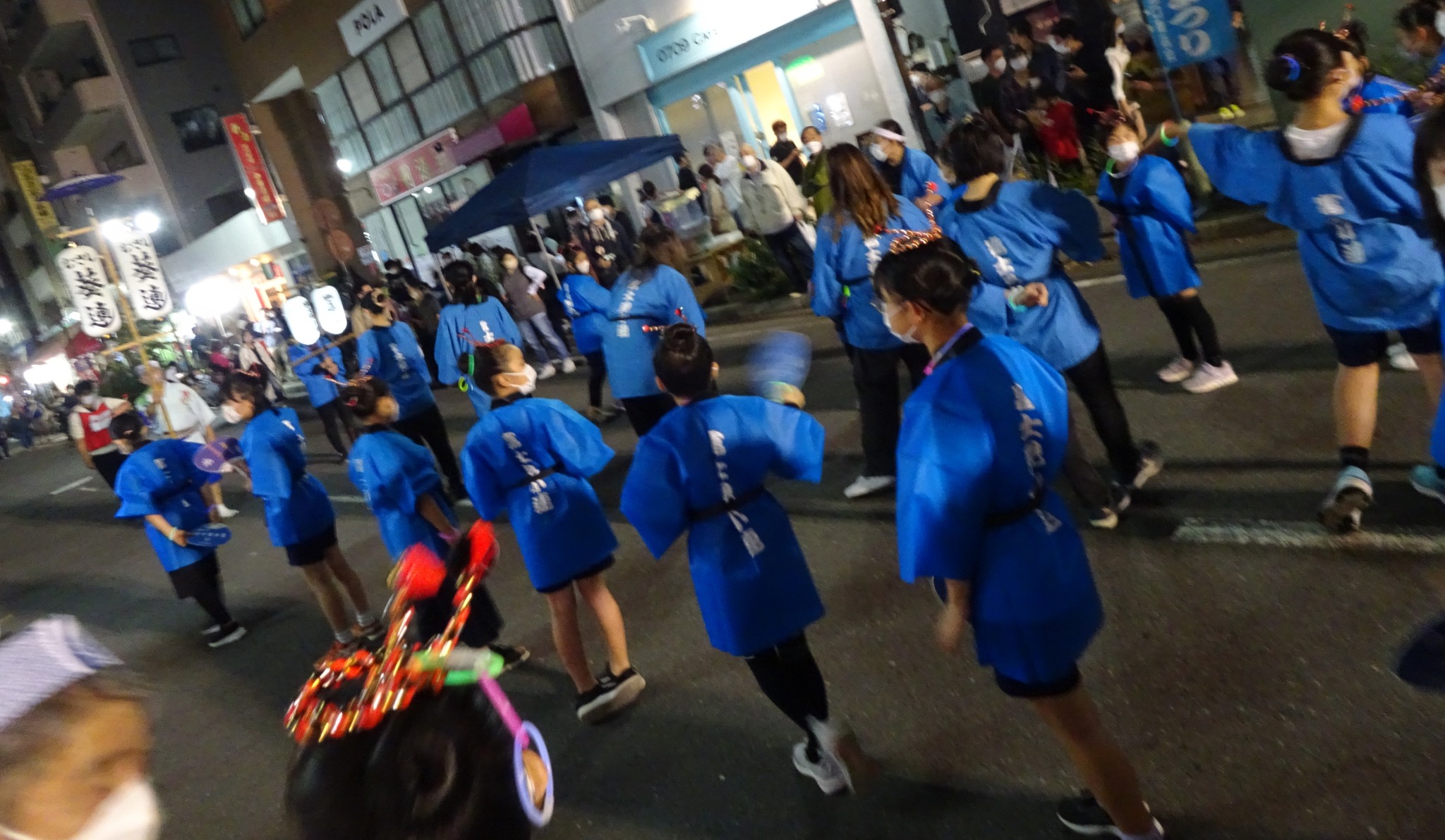 富士見小学校も、小学生7人、(富士見小出身の)中高大学生15人で阿波踊りに参加。(コロナの影響で)夏休みに入ってからの練習だったそうで、出来て良かったですね。お話を伺って、「高校生・大学生などの参加はありがたいですね」と話しました。(📷写真は演舞開始前)
