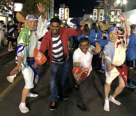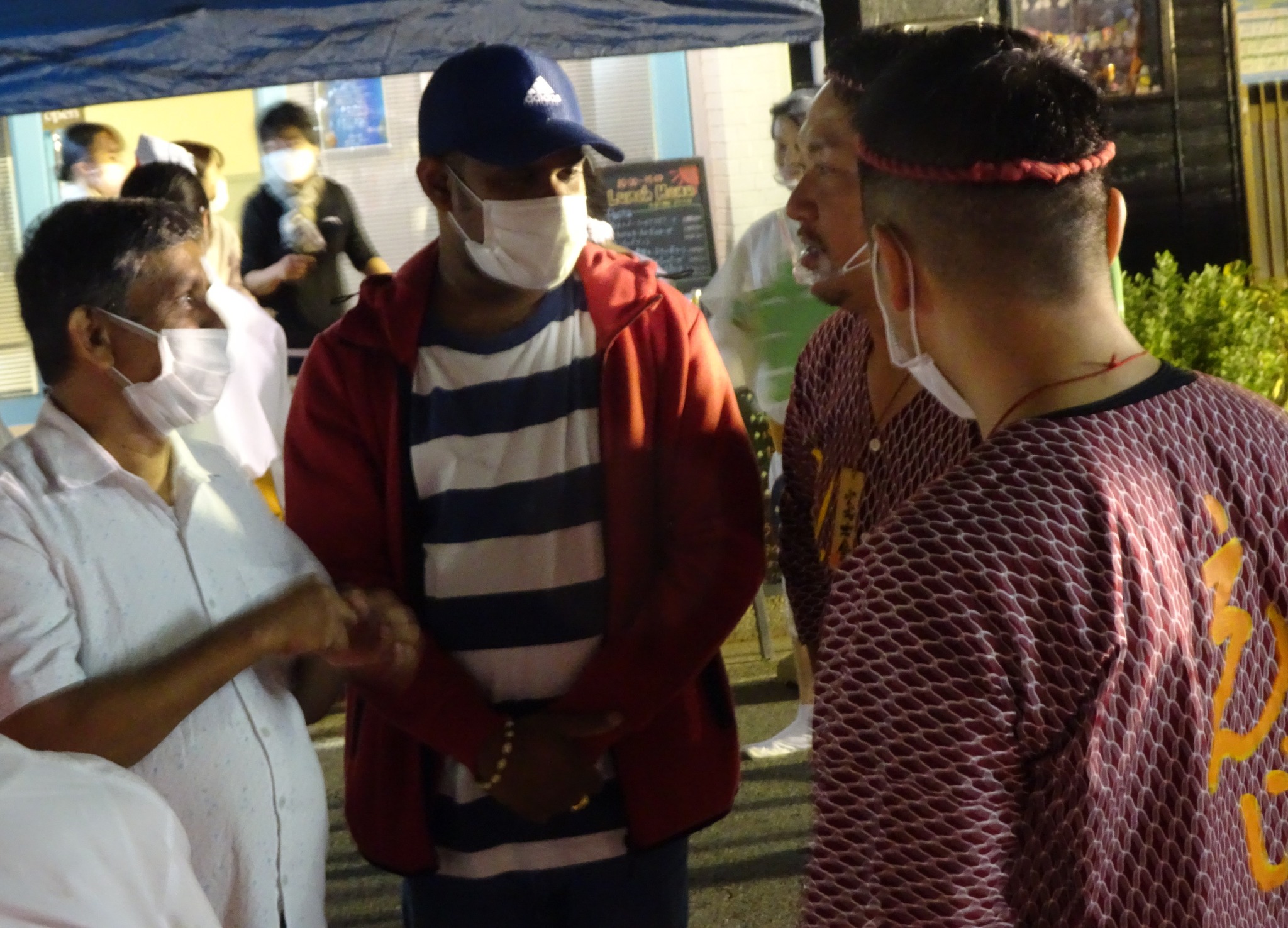 スリランカから来た狭山在住のお2人。ボランティアの方が新狭山『すかいロード祭り』に連れ出して、阿波踊りにも参加。片言の英語で私もお話。