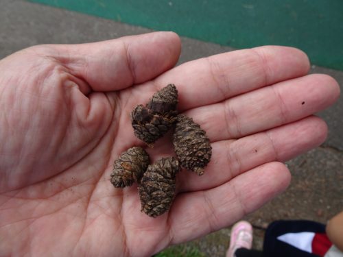 📷子ども達がくれた松ぼっくり。この後(どんぐりも含め)片手ではいっぱいになりました。(^O^)