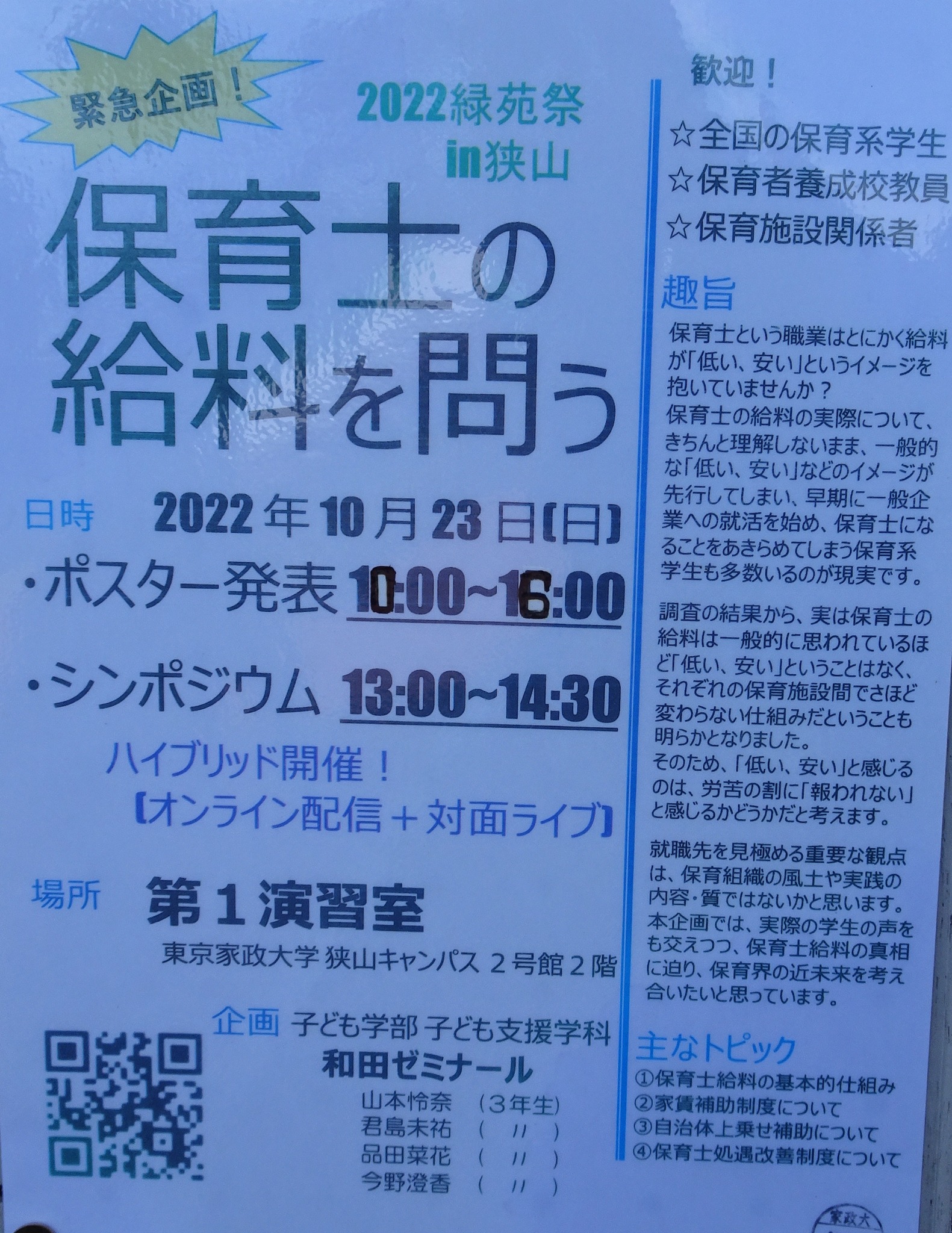私も現在受講中。チャットで埼玉県の保育士の状況資料を提出させて頂きました。