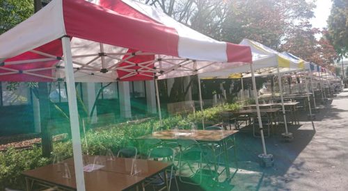 日陰に座って食べれるブースがこんなに。(写真以外の場所にも)