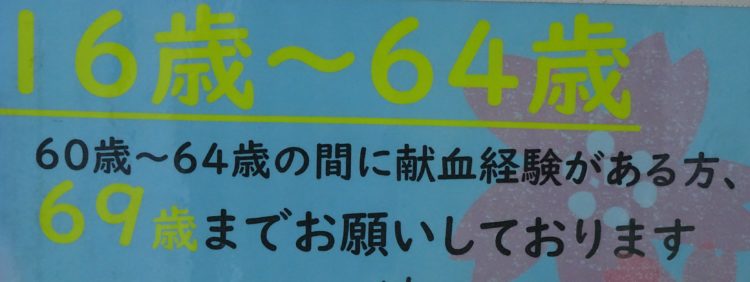 60才の方に説明したら、⇩ご存知ありませんでした。説明して良かった。献血可能年令。