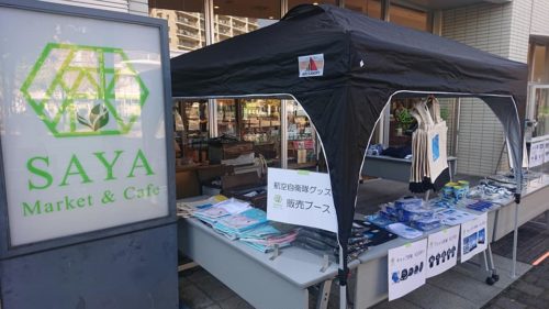 狭山市駅西口ロータリー前で航空グッズ販売特設ブースが。『SAYA Market&Cafe』では、地元のお土産品や、カフェ・カレーなどが通常営業。航空祭のお帰りに、お立ち寄り下さいませ。
