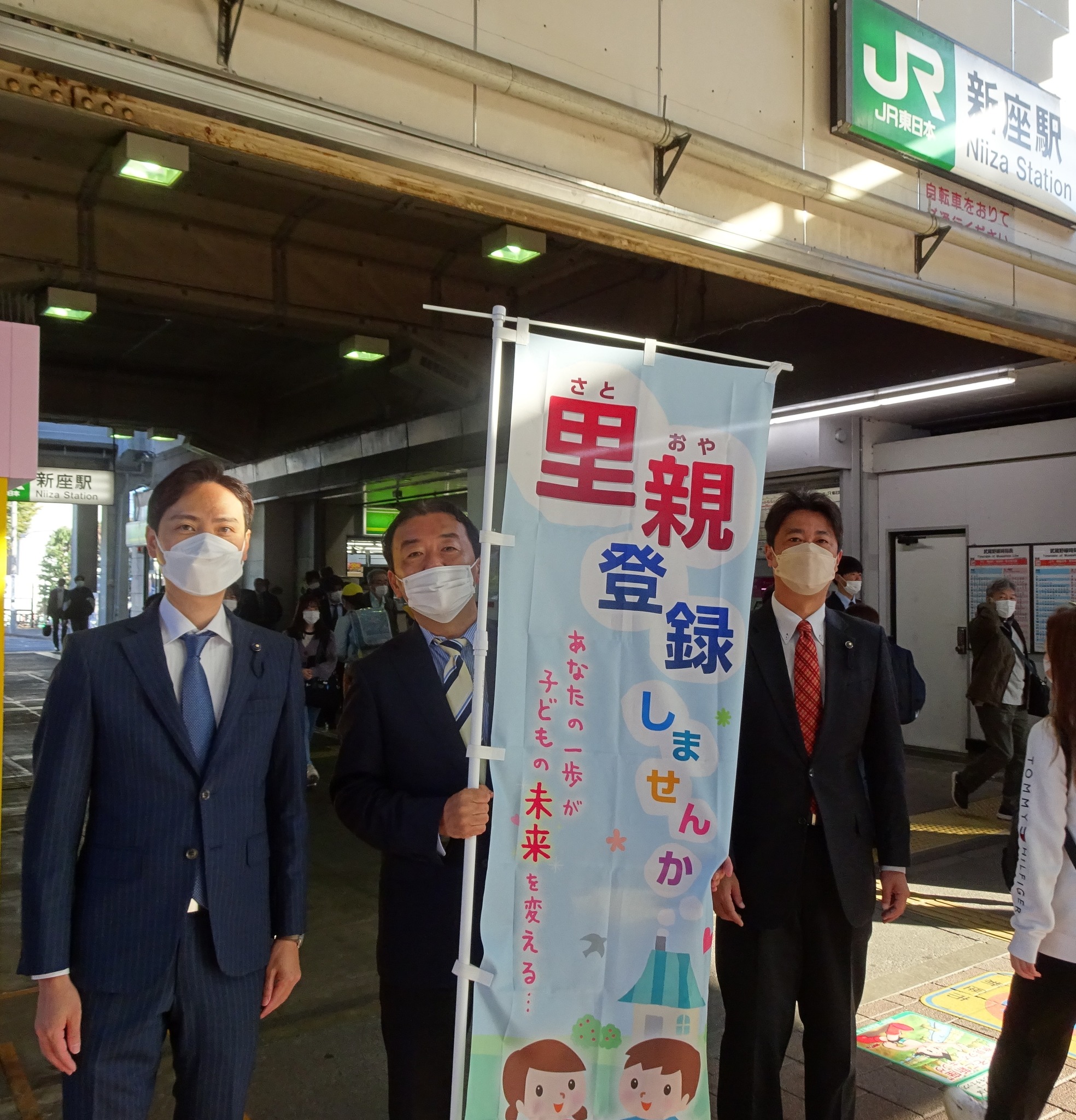 今朝(火)は新座駅で、新座市選出の安藤友貴(公明党)県議、平松大佑(無所属県民会議)県議と、里親PR活動を共に行いました。