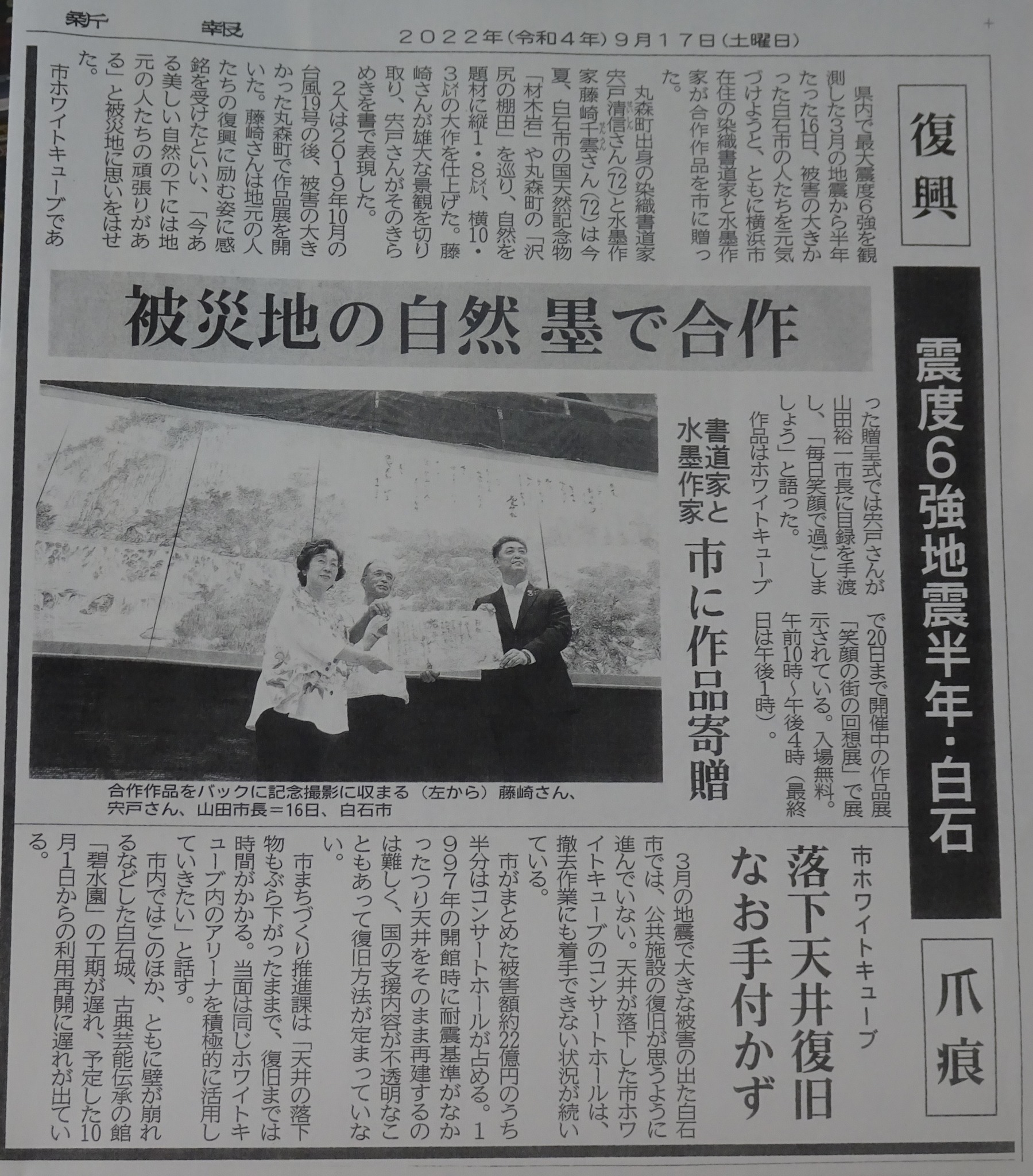 狭山市は他市からの転入者が多いですが、宮城県白石市から移住して来られた方が、今年3月の宮城県での震度6強の地震の被災地応援で、狭山市内の障がい者施設(みのり福祉会)通所者とコラボして作品を作成。