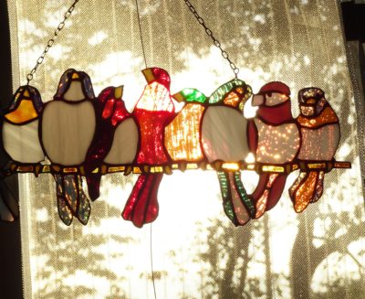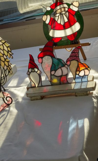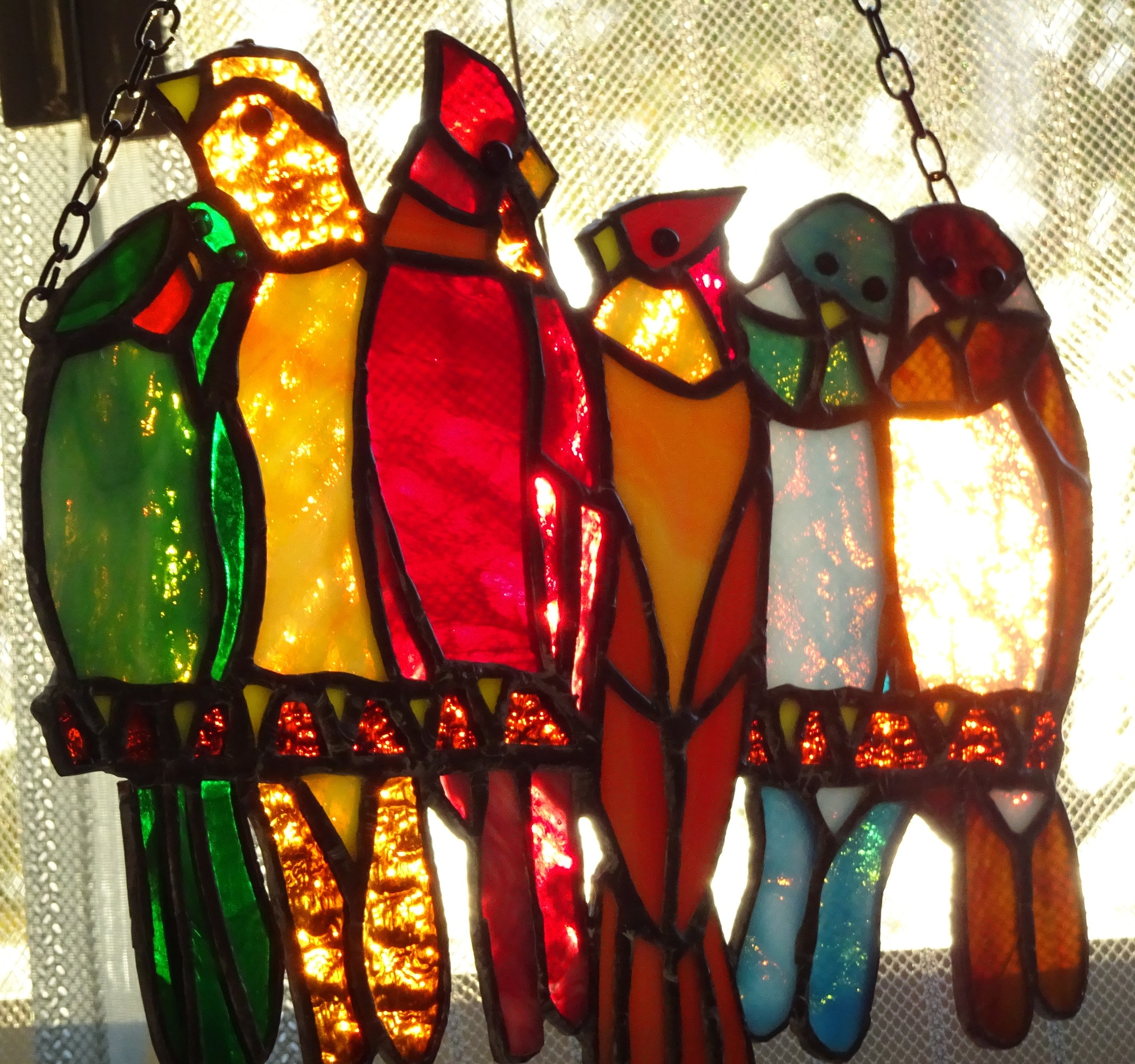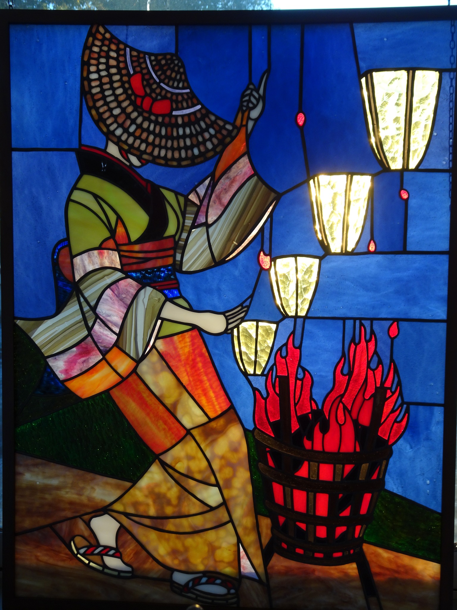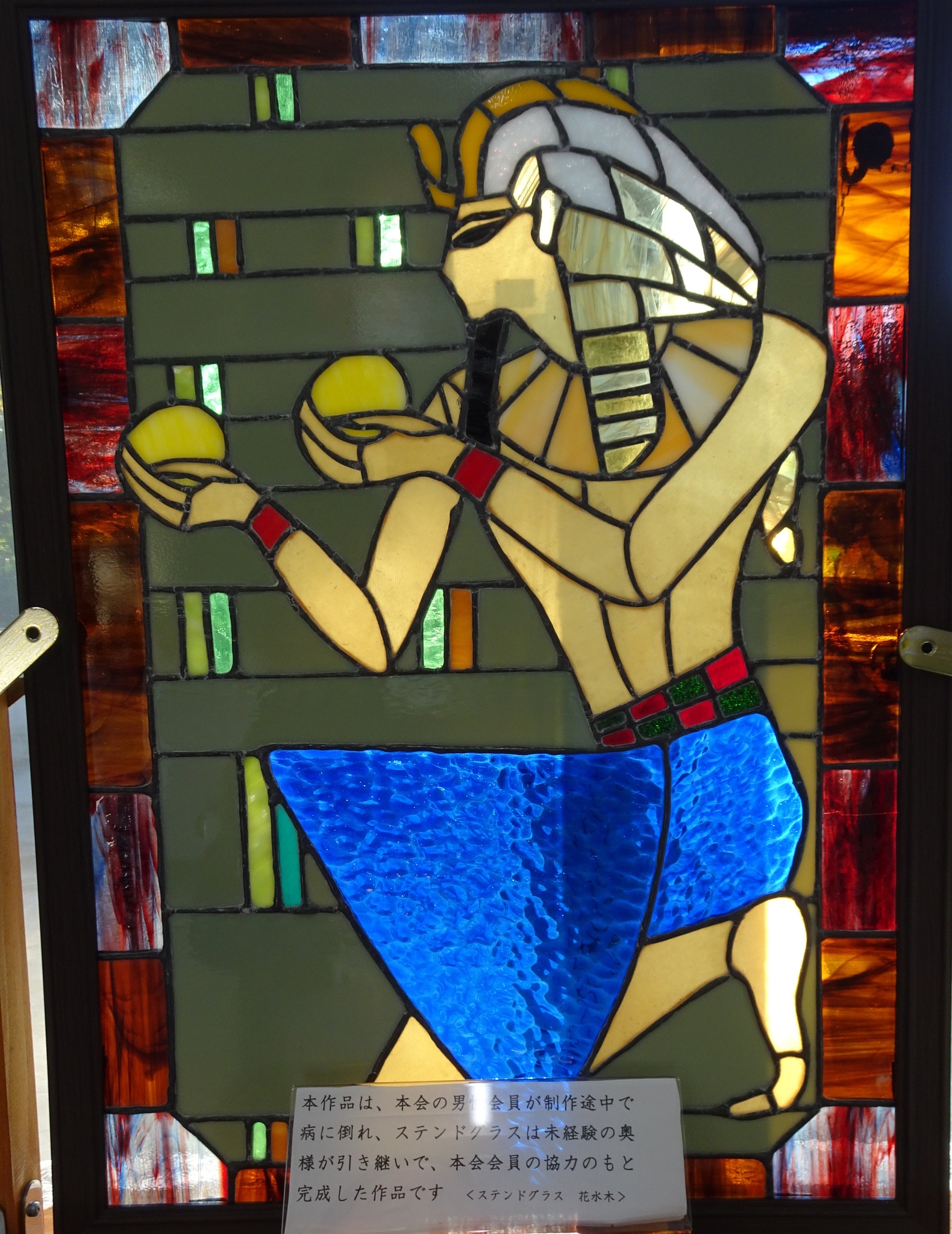 📷写真のステンドグラスは、「ご主人が公民館のサークルで作成半ばで亡くなり、それまでステンドグラスを作った事が無かった奥様が入会、1から学んで完成させた」とメンバーの方に教えて頂きました。
