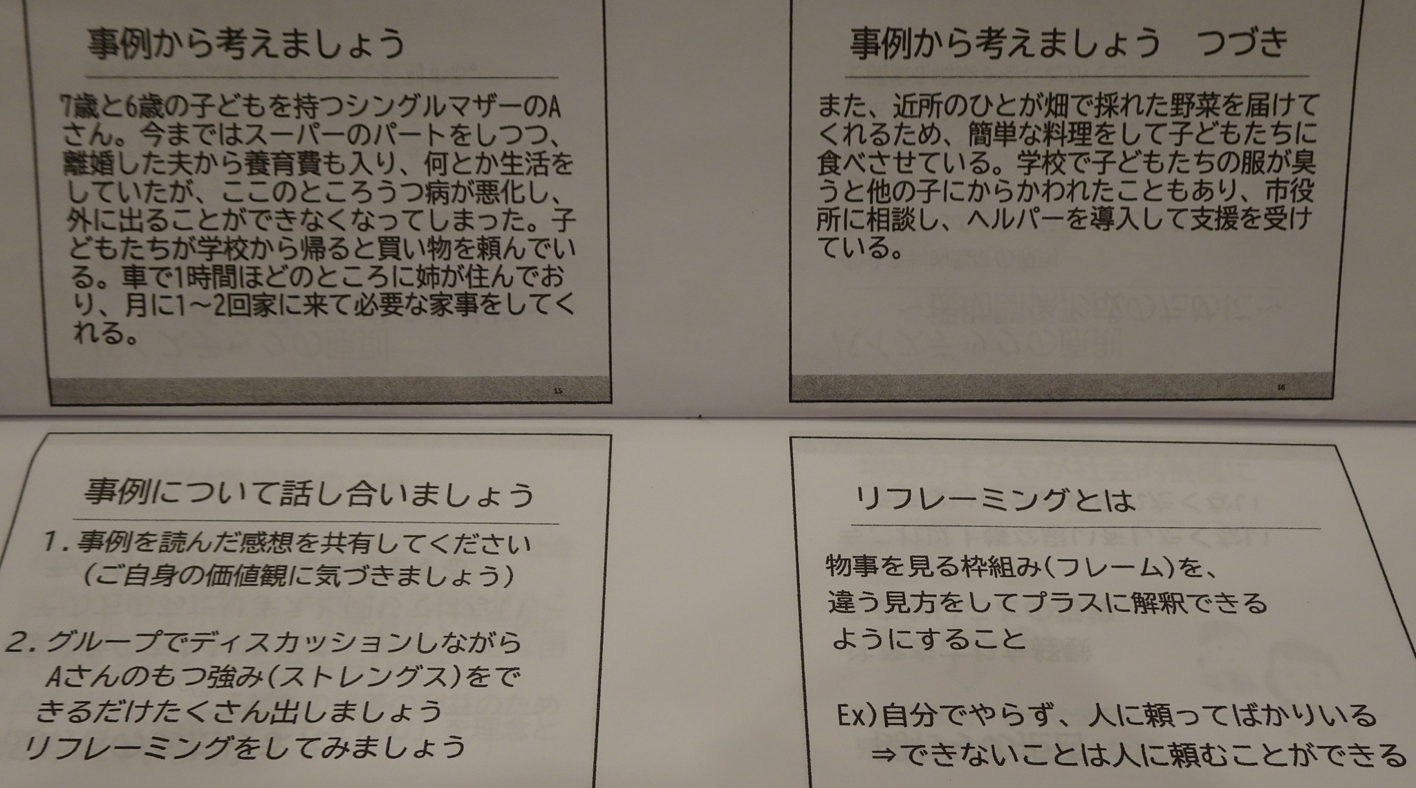 紙面のシングルマザーさんの行動で『プラスに思える事』を考える問い