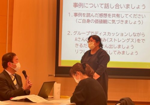 参加者1人1人がまず問いに回答した後、グループ単位でその答えを調整する。調整結果を講師があえて否定しにかかるが、それをどう肯定的に反応できるか。これは実際の相談時に接し方で問われますね。