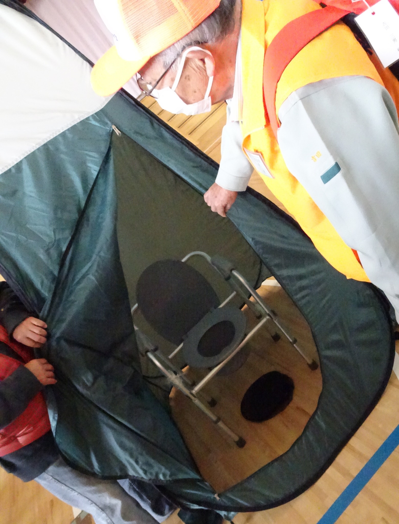 避難所での簡易トイレ