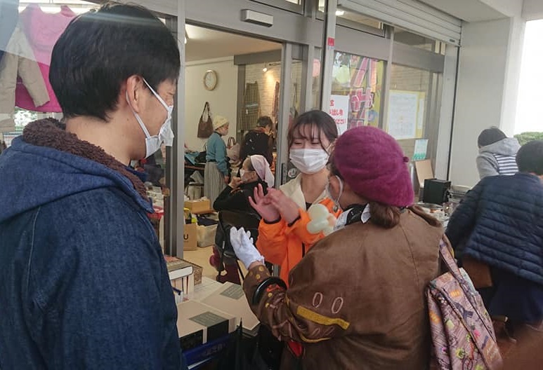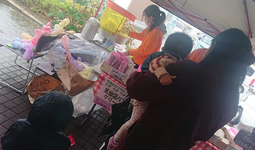 綿菓子や風船の無料配布。大学生ボランティアさんが子ども達と一緒にバルーンアートを作っていました。