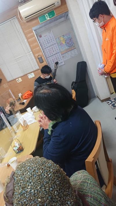 ギターでプロを目指している大学生さんの生演奏。来場者が口々に感謝していました。