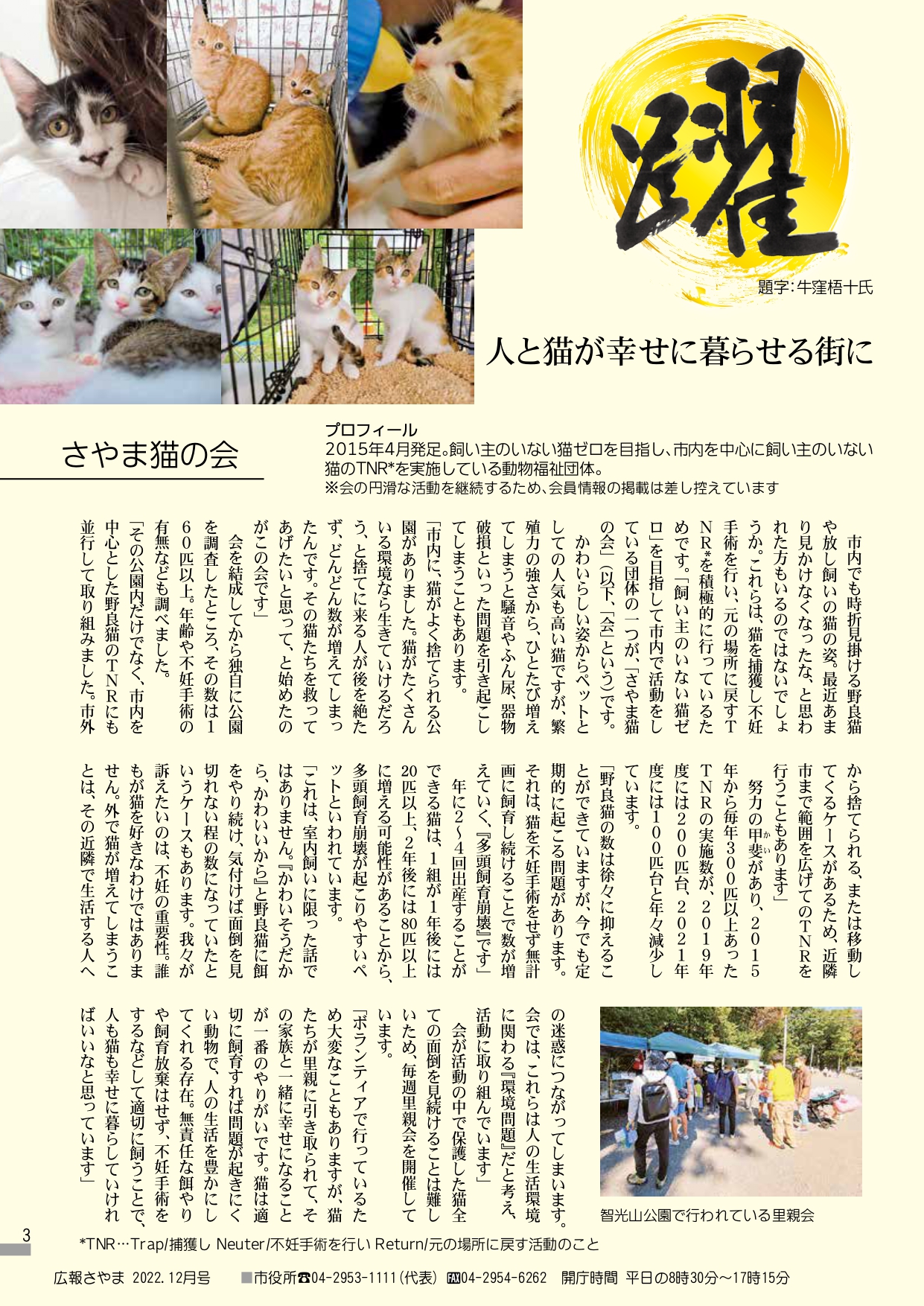 開いて最初のページで、😸『さやま猫の会』特集。ありがたい。じっくりお読み下さい。