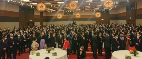 📷写真は埼玉県内最大の新年賀詞交換会で壇上に上がった時。別会場では食事も出来たようですが、この会場の飲食であるのは、狭山茶のペットボトル。ホテルの仕事など、早く雇用や生活が安定するようにしていきたいと思いました。