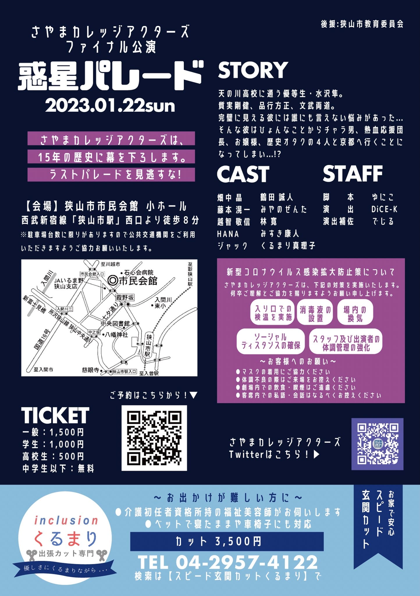 さやまカレッジアクターズファイナル公演「惑星パレード」予約ページ