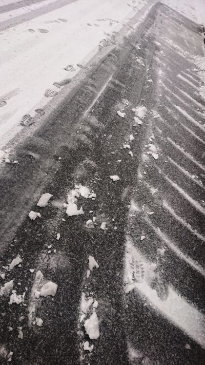 車の運転で雪道を急いで、車道の雪を歩道にけ散らさないように。見知らぬ誰かの為にご配慮を。
